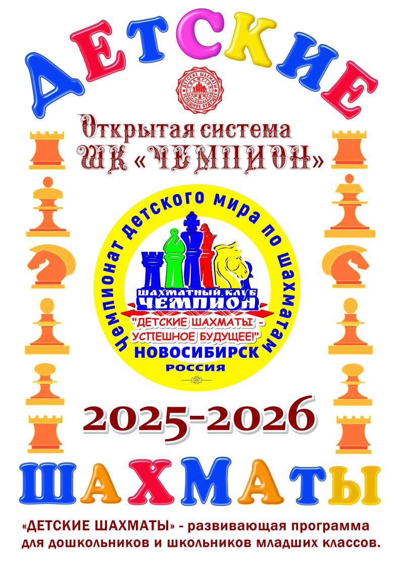 ДЕТСКИЕ ШАХМАТЫ – РАЗВИВАЮЩАЯ ПРОГРАММА! Шахматный клуб «Чемпион» принимает на занятия детей дошкольного возраста и школьников младших классов (3 – 9 лет) с различным уровнем...