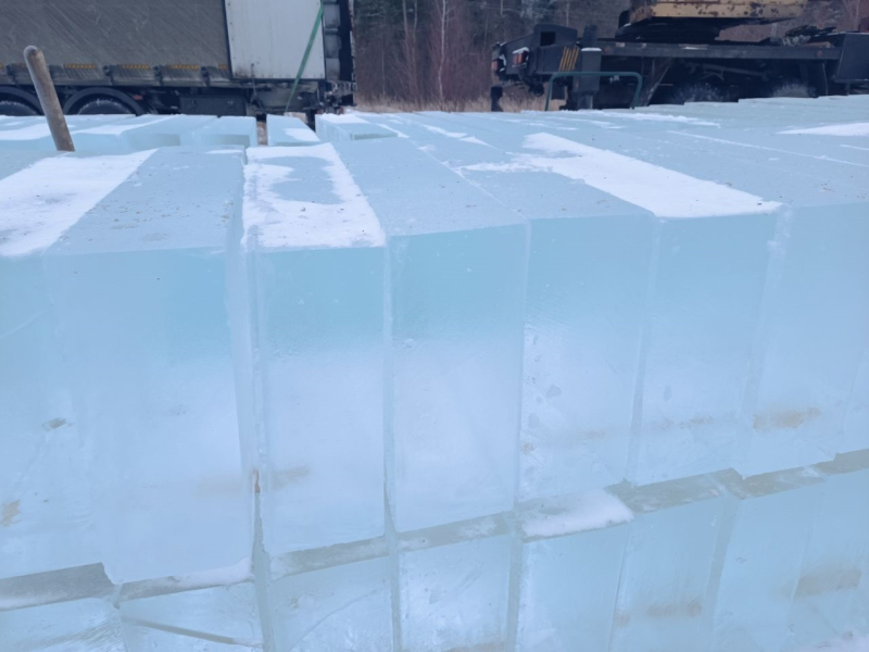 Лед идеальной геометрии, добычу производим станком, грани и углы выдержаны, что важно для работы скульпторов