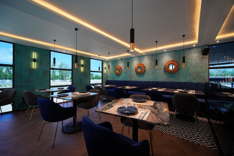 Меню тщательно проработано, включая блюда и напитки, адаптированные к любым предпочтениям. Внутри — мраморные столы и удобная мебель, а фасад украшен зеленью и стеклянными витринами. Ресторан оборудован профессиональной кухней и барной зоной с системой учета FoodStory."