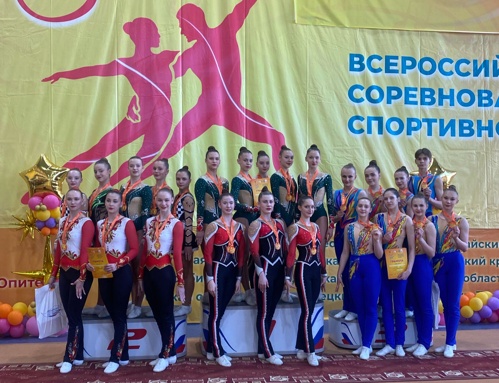 Воспитанники тренера по спортивной аэробике мастера спорта международного класса Марины Николаевны Улыбиной привезли золотые и серебряные медали всероссийских соревнований.