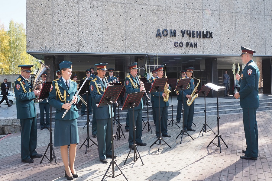 К 14.30 горожане стали собираться у Дома ученых. Здесь два военных оркестра – Новосибирского высшего военного командного училища и Новосибирского военного института войск национальной гвардии России – вышли на музыкальную перекличку.