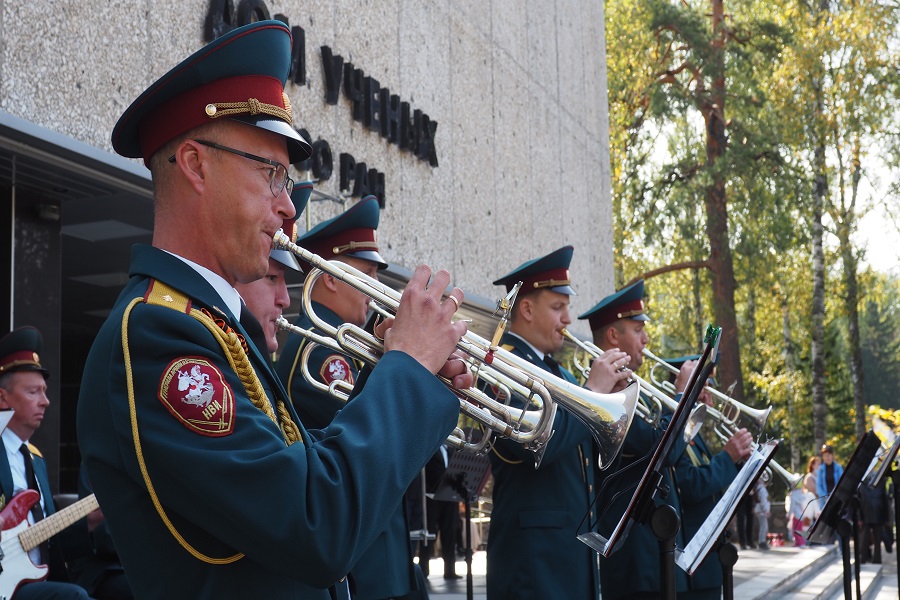 Всем знакомые хиты разных лет звучали то с крыльца малого зала Дома ученых, то с крыльца около главного входа. Кто-то пританцовывал, узнавая любимую мелодию, кто-то снимал всё на видео, чтобы поскорее выложить в соцсети. Событие уникальное: военные оркестры иногда дислоцируются на одной сцене, но чтобы они выступали рядом, на соседних площадках и поочередно – такого, пожалуй, в Академгородке еще не видели!