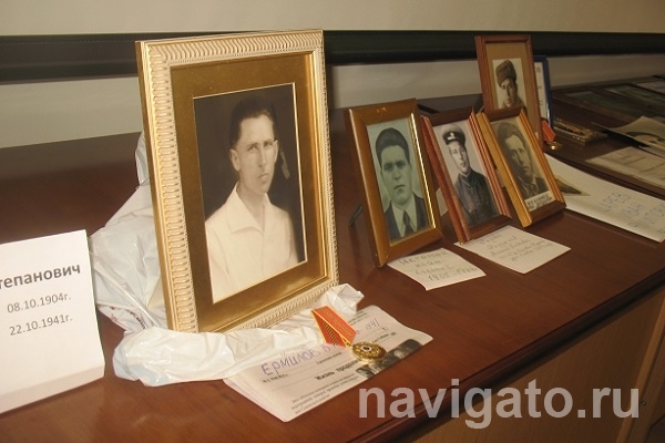 Получая юбилейную медаль, участник мероприятия возлагает ее к портрету погибшего отца, показывая тем самым, что это его заслуженная награда, которую ему не удалось получить при жизни.