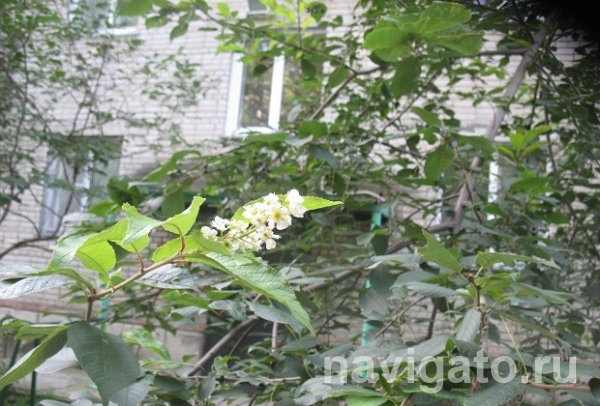 На улицу Арбузова опять пришла весна. В первый день августа около дома №1 зацвели несколько кистей черемухи.