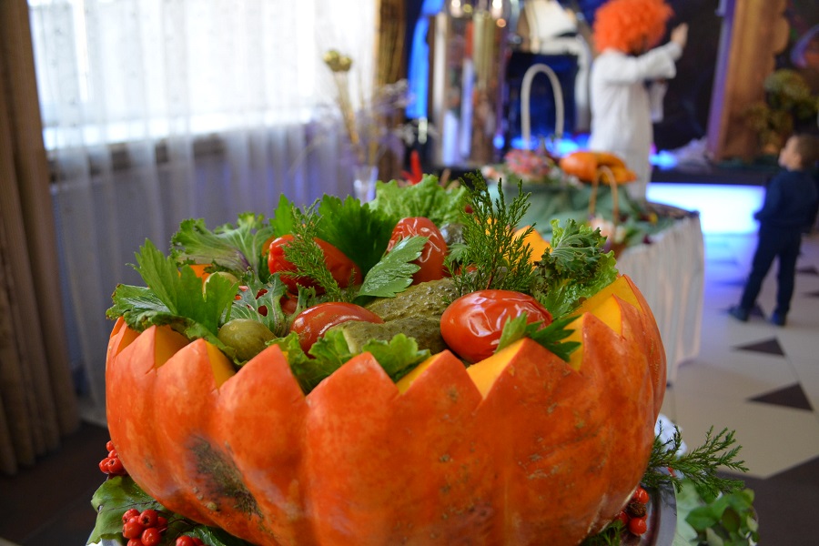 В ресторане Дома ученых всегда всё очень вкусно. Сегодня сюда манит гостей аромат пирожков, что в широком ассортименте пекут местные повара. Оформление столов – в осеннем стиле. Блюда выглядят так нарядно и аппетитно, что слюнки текут! Пока взрослые общаются за чашечкой кофе или чая, неунывающий профессор Веселушкин не дает малышам скучать и учит полезным вещам. У него урок три в одном: игры, танцы и урок безопасности.