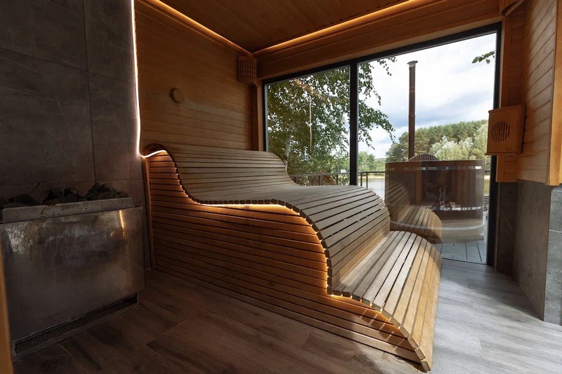 Банный комплекс здесь — не просто дополнение, а часть философии отдыха. Сауна с панорамой на залив, горячие купели под открытым небом, банное СПА и массажи с использованием натуральных масел создают полноценный ритуал расслабления. После — травяной чай, прогулка по лесу или катание на сап-борде.
