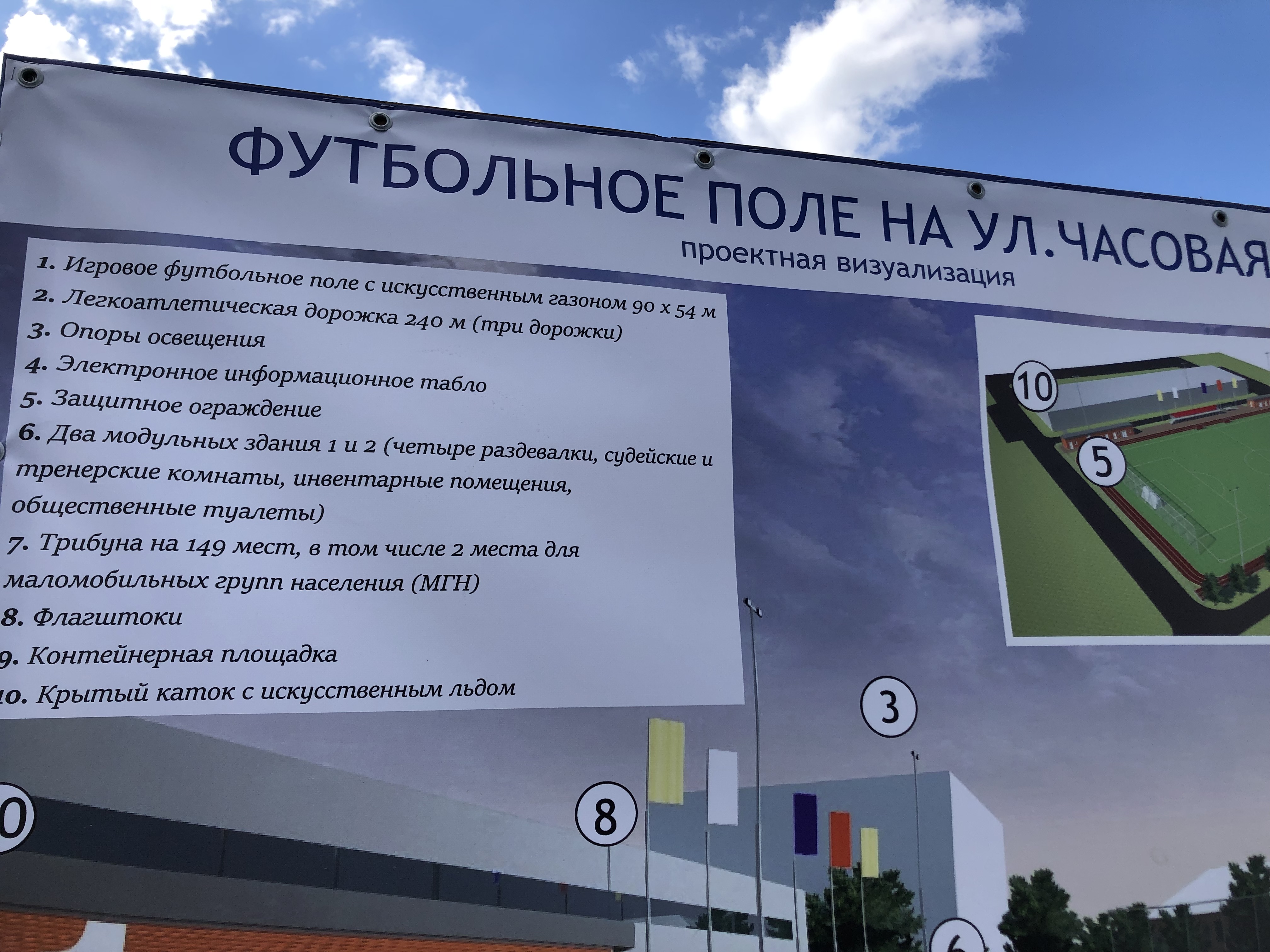Строительство на улице Часовой футбольного стадиона – наказ депутату Законодательного Собрания Новосибирской области Алексею Андрееву. 26 августа на стройплощадке побывали губернатор Новосибирской области Андрей Травников, мэр Новосибирска Максим Кудрявцев и председатель Совета депутатов города Новосибирска Дмитрий Асанцев.