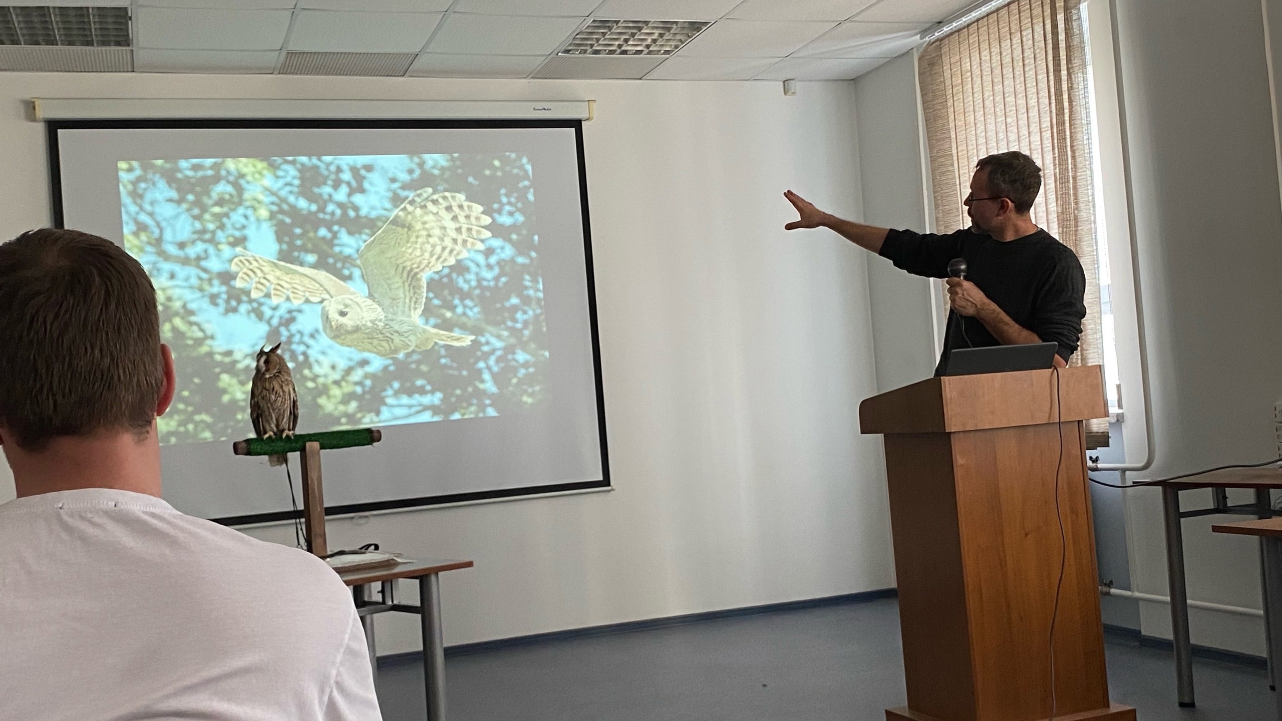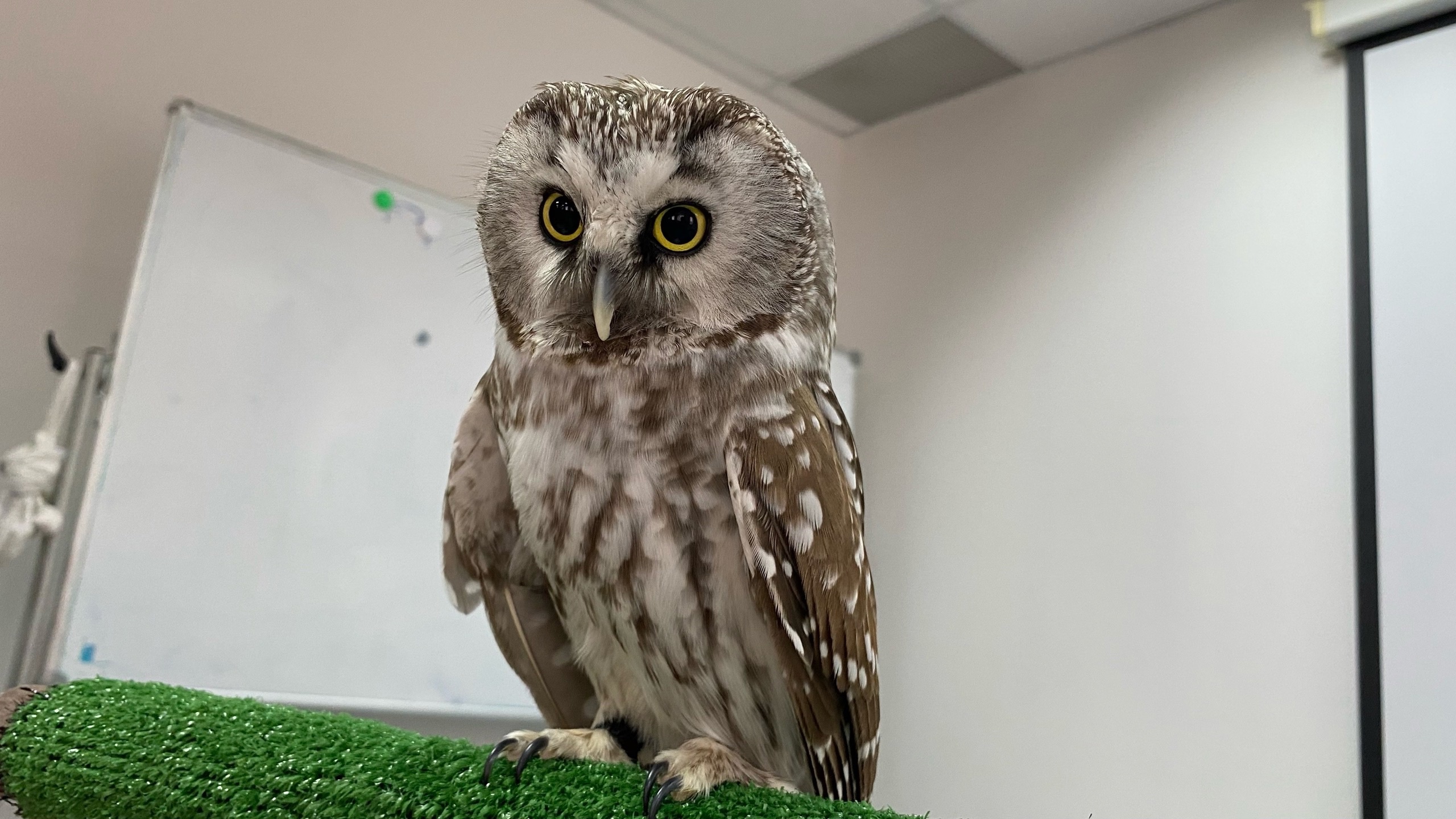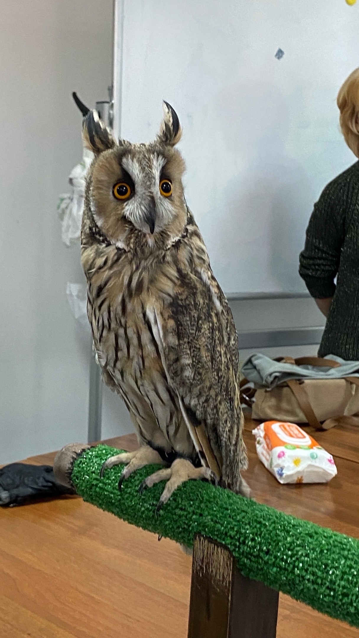 Оказалось, что мохноногий сыч попал в центр около полутора лет назад. Его привезли к волонтёрам с застарелой травмой крыла и свежей черепно-мозговой травмой. Сыча назвали Чингизом, вылечили, но на волю ему нельзя.