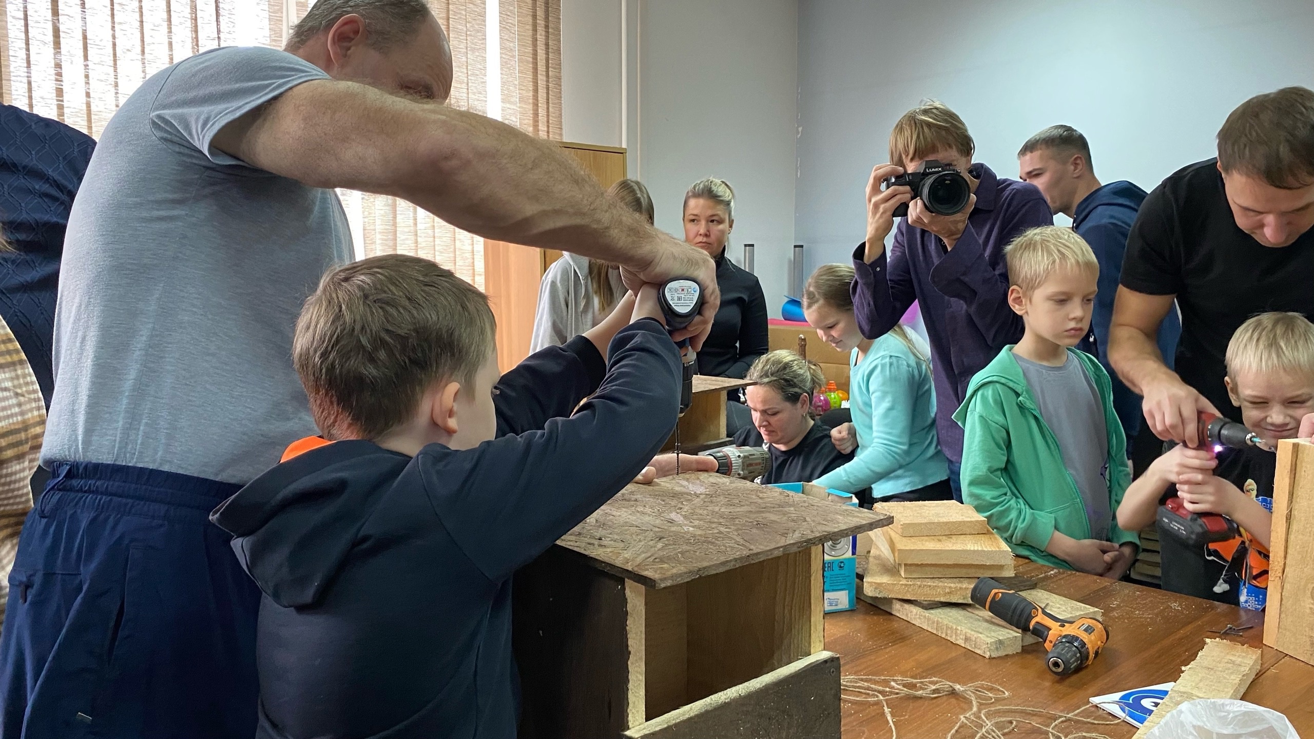 В лесных массивах Новосибирской области, в том числе и Советского района, гнездятся несколько видов сов: ушастая, болотная и ястребиная совы, длиннохвостая и бородатая неясыть, домовой и мохноногий сыч, воробьиный сычик, насекомоядная совка сплюшка. Чтобы строители – дети и взрослые – хорошо понимали, для кого они делают домики, на мастер-класс по изготовлению совятников пригласили специалистов Центра реабилитации хищных птиц с их подопечными. Очаровательные и в то же время очень сосредоточенные птицы сразу же стали центром притяжения внимания. Всем было не только интересно сфотографироваться с ними, но и узнать об обитателях леса побольше.
