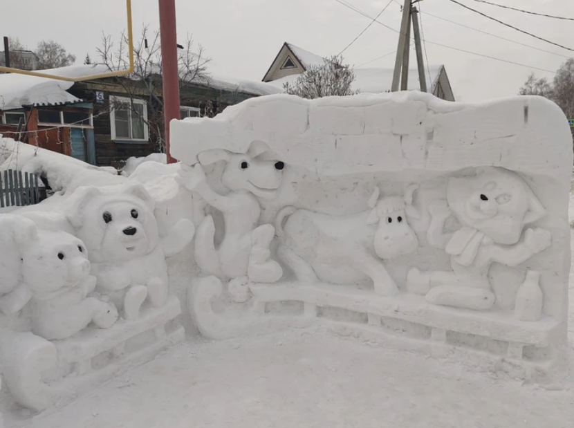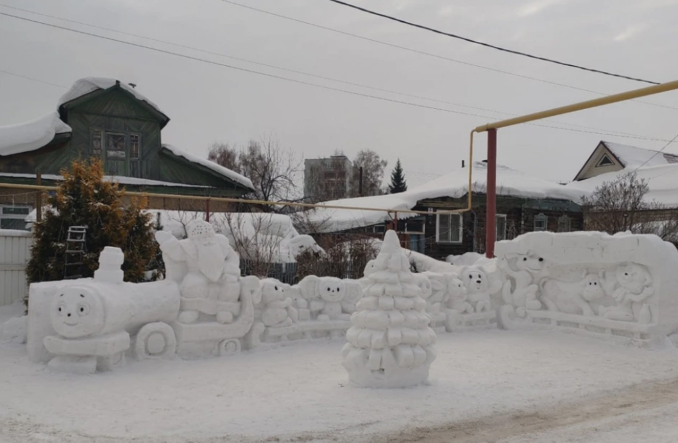 Жители Шлюза вновь удивили новосибирцев снежными скульптурами