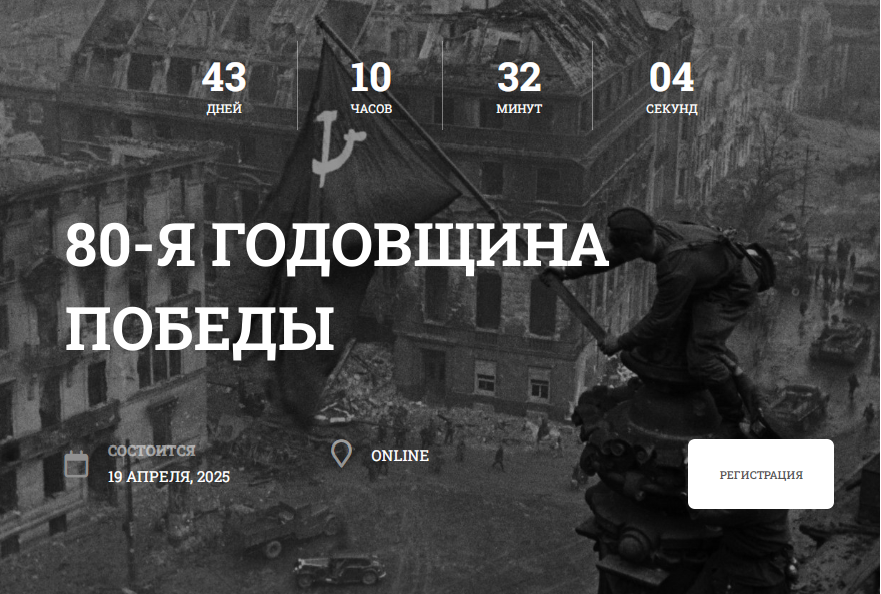 Открыта регистрация на квиз-турнир, посвящённый 80-летию Победы в Великой Отечественной войне. Онлайн-соревнования состоятся с 19 по 20 апреля.