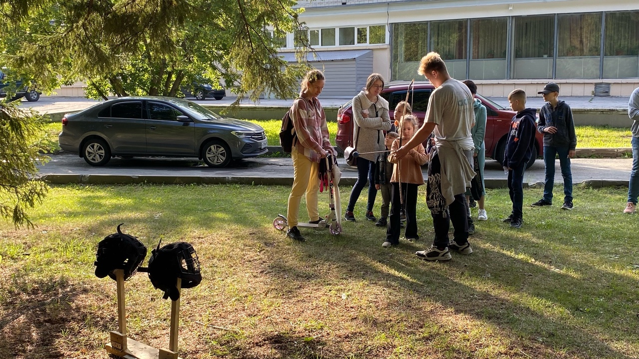 Если перед сценой в основном собрались люди уже в возрасте, то на организованных спортивными клубами площадках было много детей и подростков. Развлечения разные: для тех, кто умеет хорошо балансировать – возможность пройтись по канату, для тех, кто уверен в своей меткости – стрельба из лука.