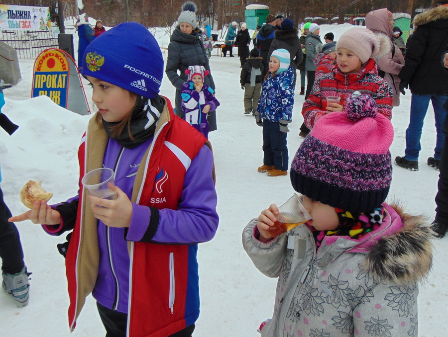 Совпадение с Масленицей получилось замечательное: после финиша спортсмены подходили к волонтерам ЦМД «Левобережье», которые угощали горячим чаем, булочками и блинчиками.