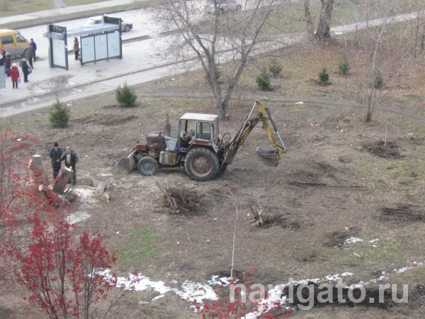 На углу Российской и Демакова высаживают деревья