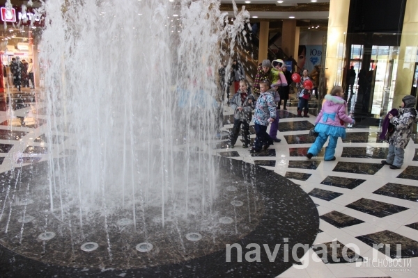 Главная неожиданность, которая ждет здесь даже бывалых посетителей торговых центров, это фонтан, который визуально никак не обозначен (если не считать вмонтированной в пол в этом месте подсветки). Это просто струи воды, которые в какой-то момент могут начать бить из-под пола под восторженный визг детей.