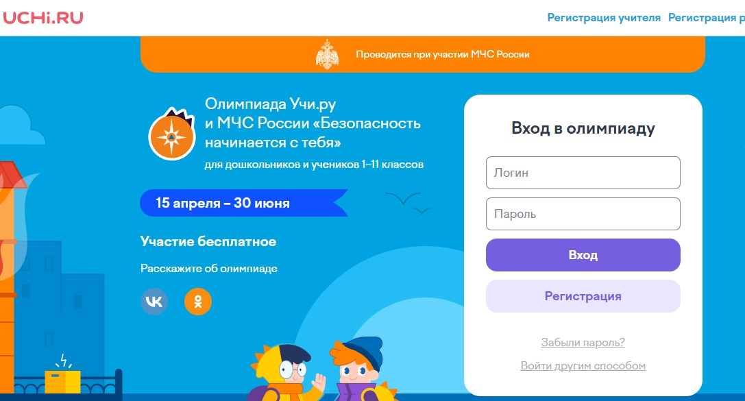 Всероссийская онлайн-олимпиада «Безопасность начинается с тебя» началась 15 апреля и продлится до 30 июня. Ее организаторы – МЧС России и образовательная онлайн-платформа «Учи.ру».