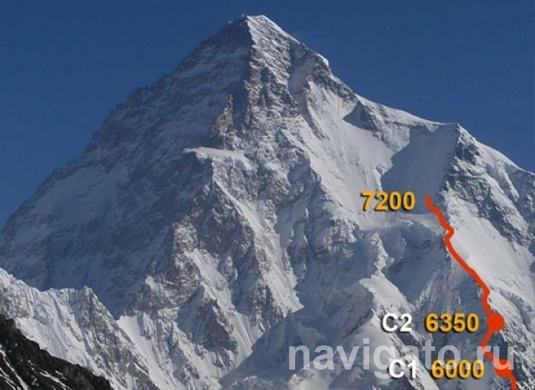 Высота вершины К2 - 8611 метров, на сайте экспедиции она называется самым сложным и самым северным восьмитысячником мира. Вершина расположена в горной системе Каракорум, на границе Пакистана и Китая. Последняя высота, на которую удалось выйти участникам российской экспедиции в рамках восхождения, составила 7200 метров.