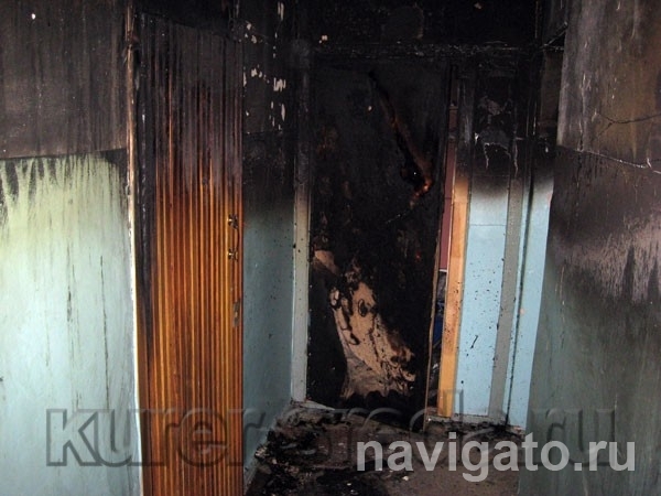 В результате поджога (на месте пожара были обнаружены остатки подставки под свечу, жильцы говорили, что в подъезде пахло бензином) полностью выгорела деревянная дверь, огонь уничтожил и деревянную обшивку железной входной двери. Коридор закопчен, огонь уничтожил некоторые вещи, расположенные рядом с входными дверями.
