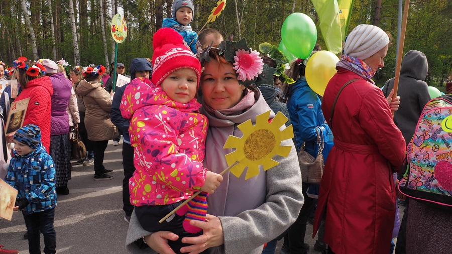 Шествие колонны воспитанников детских садов, школ и патриотических клубов проходит в самом сердце Академгородка не первый год. Ребята выстраиваются в колонну около гостинцы «Золотая долина», а дальше по улице Ильича идут до Дома ученых.