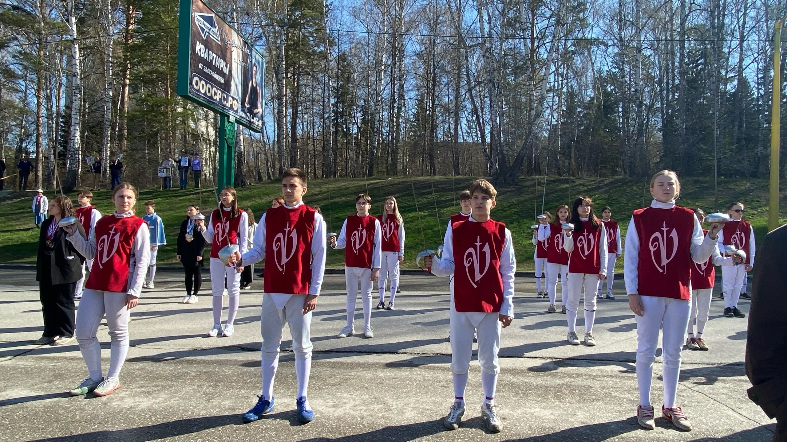 Митинг прошел и на левом берегу Советского района. Там организовали мероприятие по-другому. Вели его парень с девушкой – ребята из молодежного центра «Левобережье». Представителям старшего поколения на площадке для удобства поставили стулья. Ребята из Центра образования №165 им. В.А. Бердышева принесли свое знаменитое «полотно мира».