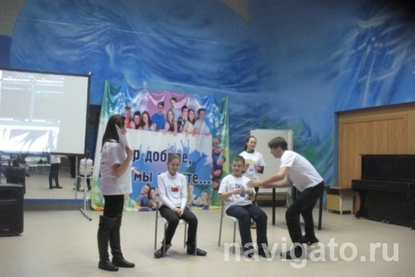 Ученики 119-й школы, часть из которых выступали за свое общеобразовательное учреждение, а часть – за волонтерский отряд «Маяка» рассказали обо всех плюсах и минусах волонтерской деятельности, пофантазировали, чем они могли бы помочь в кафе и метро, поиграли в забавные игры на сплочение команды.