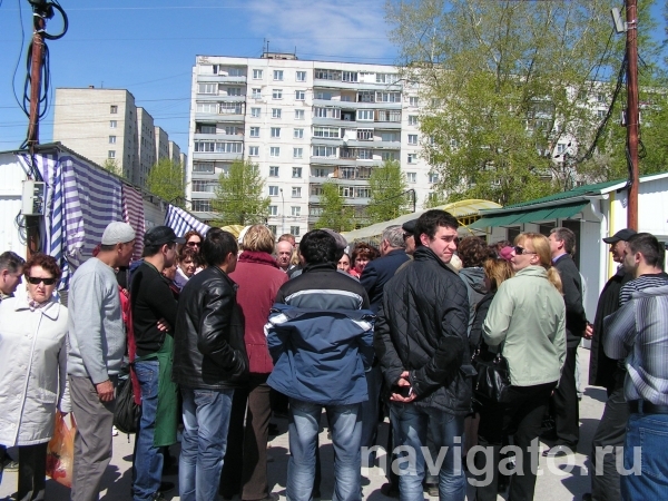 - Приближаясь к рынку НЗА,слышу от старушек, торгующих на обочине: можете не ходить, проходы перекрыли омоновцы. На центральном входе, загроможденном блоками металлической ограды, человек в камуфляжной форме с казачьими шевронами действительно известил: рынок закрыт! Но слухи об омоновцах оказались неверными: часовыми у ворот стояли простые охранники.