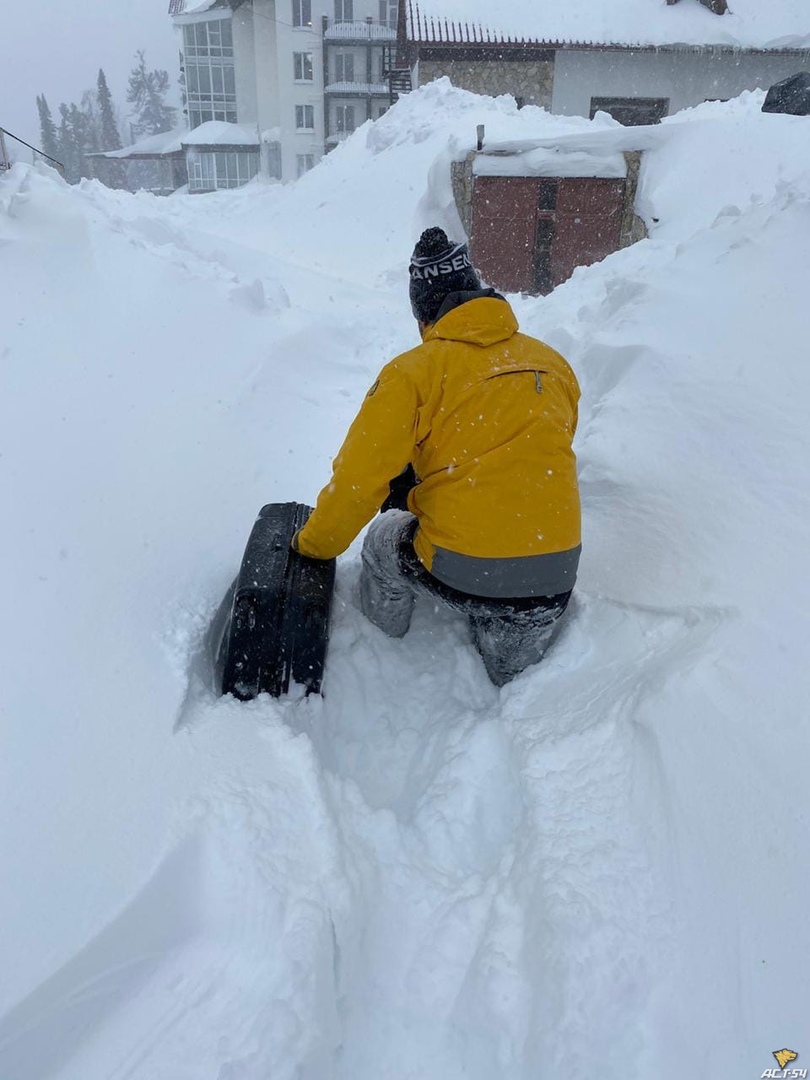 С трудом выбираются новосибирцы из Шерегеша из-за сильных снегопадов