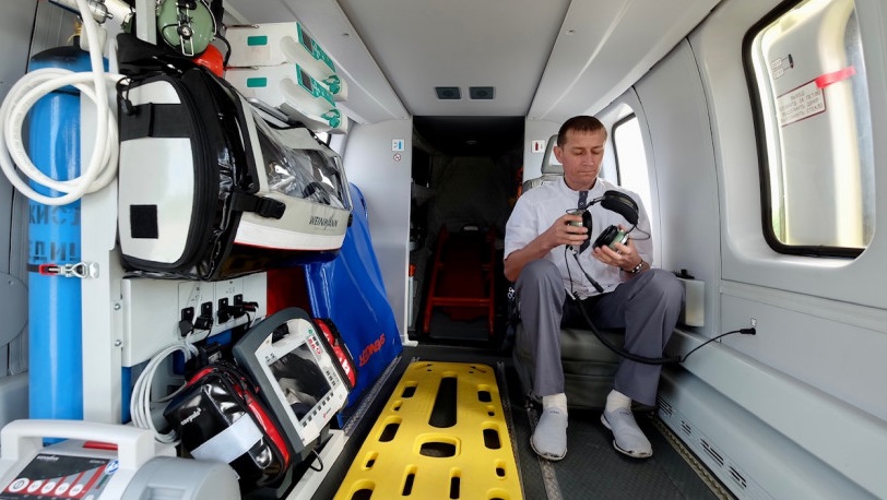 — Мы летаем на расстояния до 200 километров. Скорость вертолета – 220 километров в час. Высота – до 4,5 тысячи метров. Он вмещает реанимационное оборудование, одного пациента и двух медиков, — уточнил пилот.