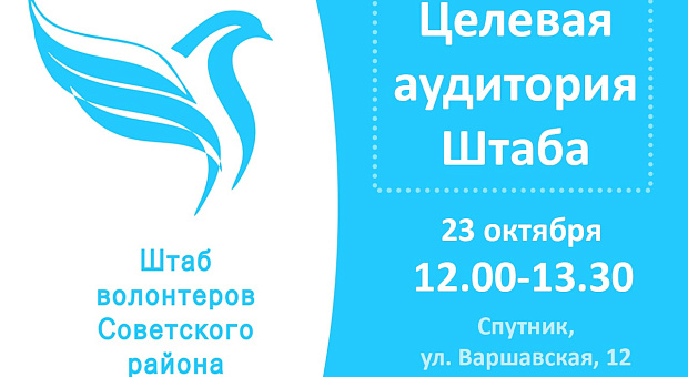 В Новосибирске растёт число людей, которые добровольно и бескорыстно помогают обществу и отдельным людям, решают вопросы сохранения окружающей среды. Советский район – не исключение. Здесь работает Штаб волонтёров. Открытая встреча на тему «Целевая аудитория Штаба» пройдёт в четверг 23 октября.