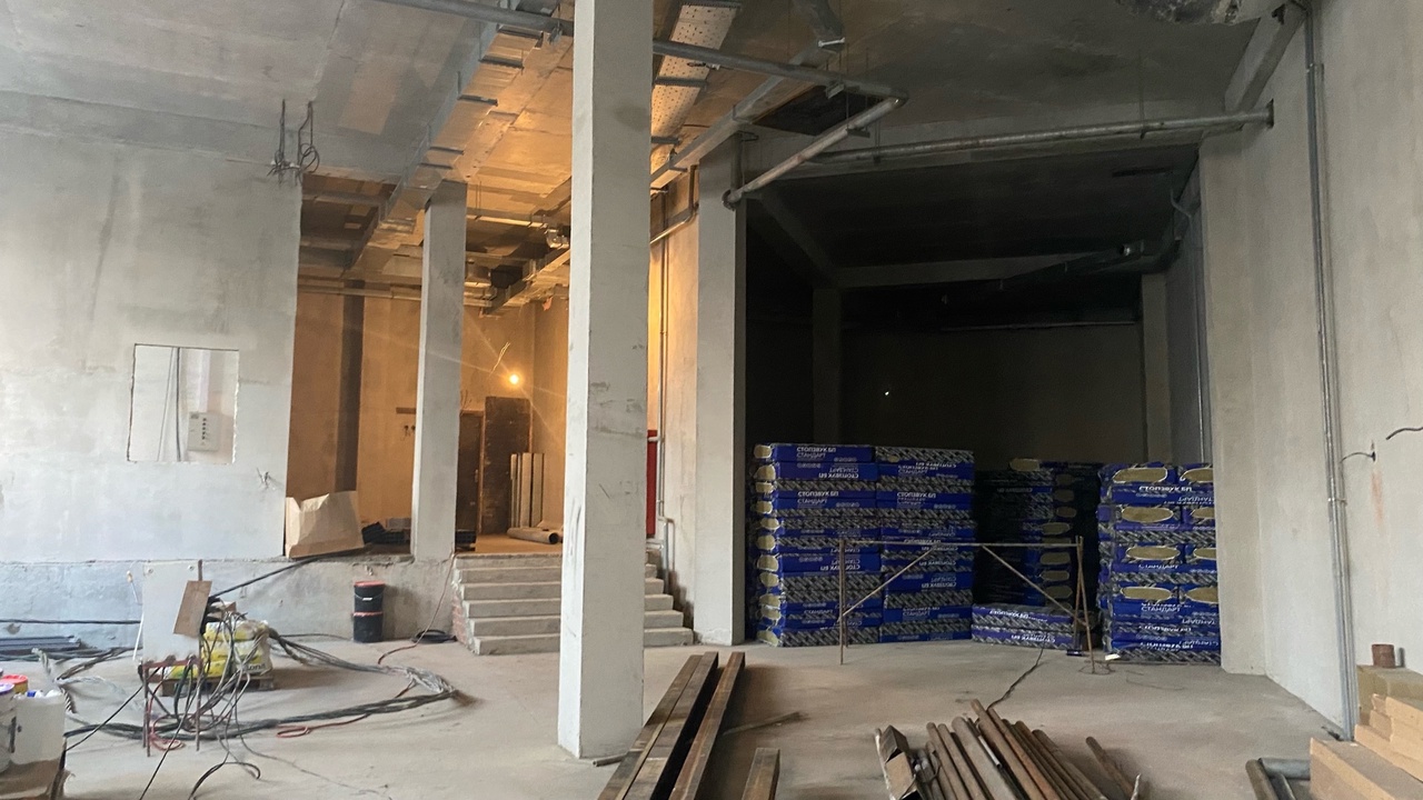На сегодняшний день закончены строительные работы: полностью готова коробка, закрыт тепловой контур здания. В ближайшее время должны дать отопление. На 3-м и 4-м этажах почти завершили отделочные работы. Как только будет отопление, строители смогут приступить к внутренней отделке первого этажа.
