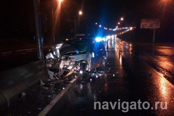 В ночь на воскресенье водитель «Тойота Виста» влетел в дорожный разделитель и столб на Бердском шоссе в Новосибирске.