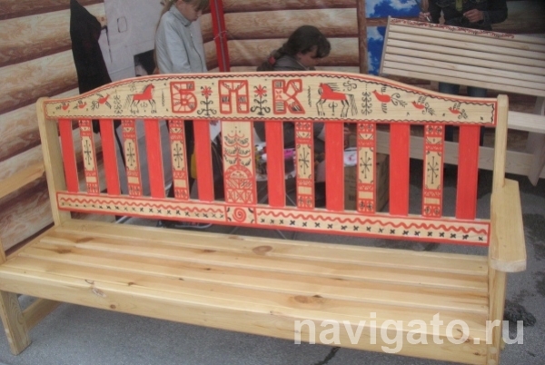 Сразу три новые скамьи ожидают установки на аллеях парка Бердска. Деревянные изделия декорированы в стиле традиционных народных росписей: гжель, хохлома и жостово.