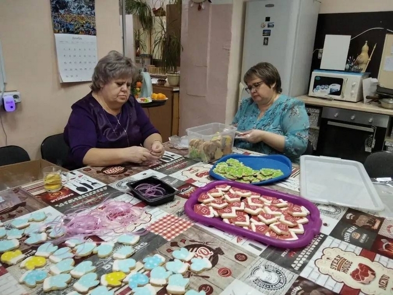 В преддверии Нового года Татьяна Субботина испекла 600 имбирных пряников, которые наверняка поднимут настроение участникам СВО. Татьяна Лукина связала ребятам тёплые шерстяные носки, которые зимой особенно нужны в холодных окопах. Елена Волина, Валентина Харьковская и Галина Першуткина подготовили посылки с тёплыми вещами и перевязочными материалами. Всё это поедет в 41-ю армию бойцам пехоты.