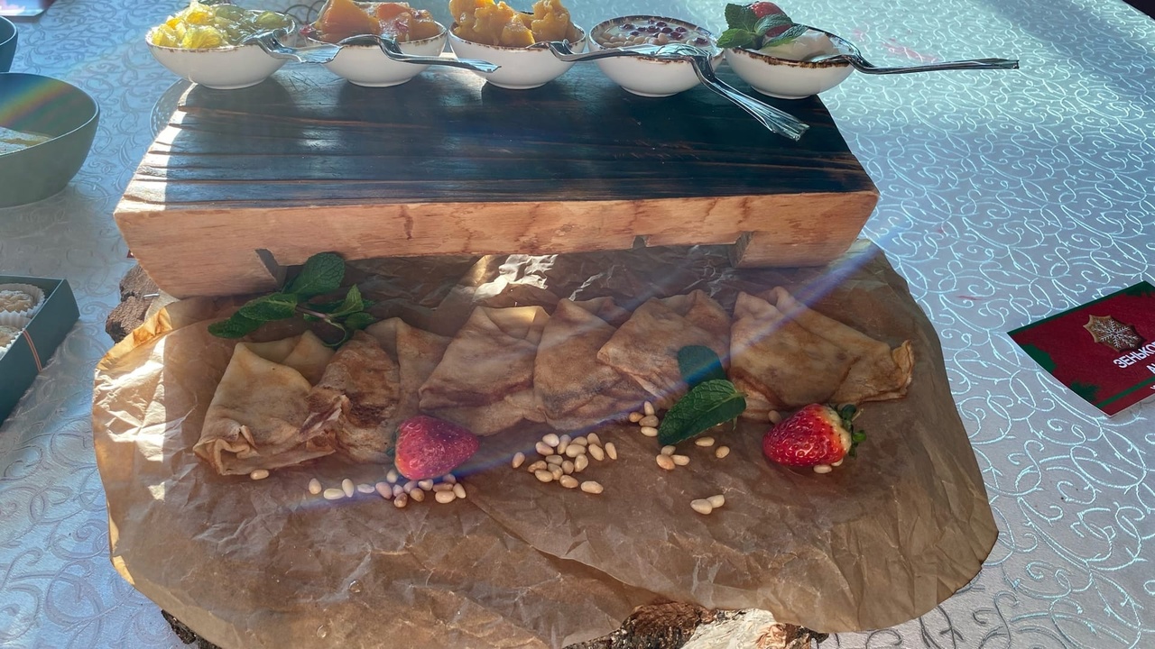 — Мы выбрали номинацию «Уникальный десерт». Приготовили кружевные блины, это сибирское блюдо, и к ним различное варенье. Например, у нас есть варенье из огурцов. Звучит странно, но это очень вкусно. Берем огурцы, нарезаем их соломкой, добавляем сахар и провариваем минут 40. И потом добавляем цедру лимона, — рассказывает Анастасия Гапонова, повар-универсал Gorskiy City Hotel (ООО «Орбита»).