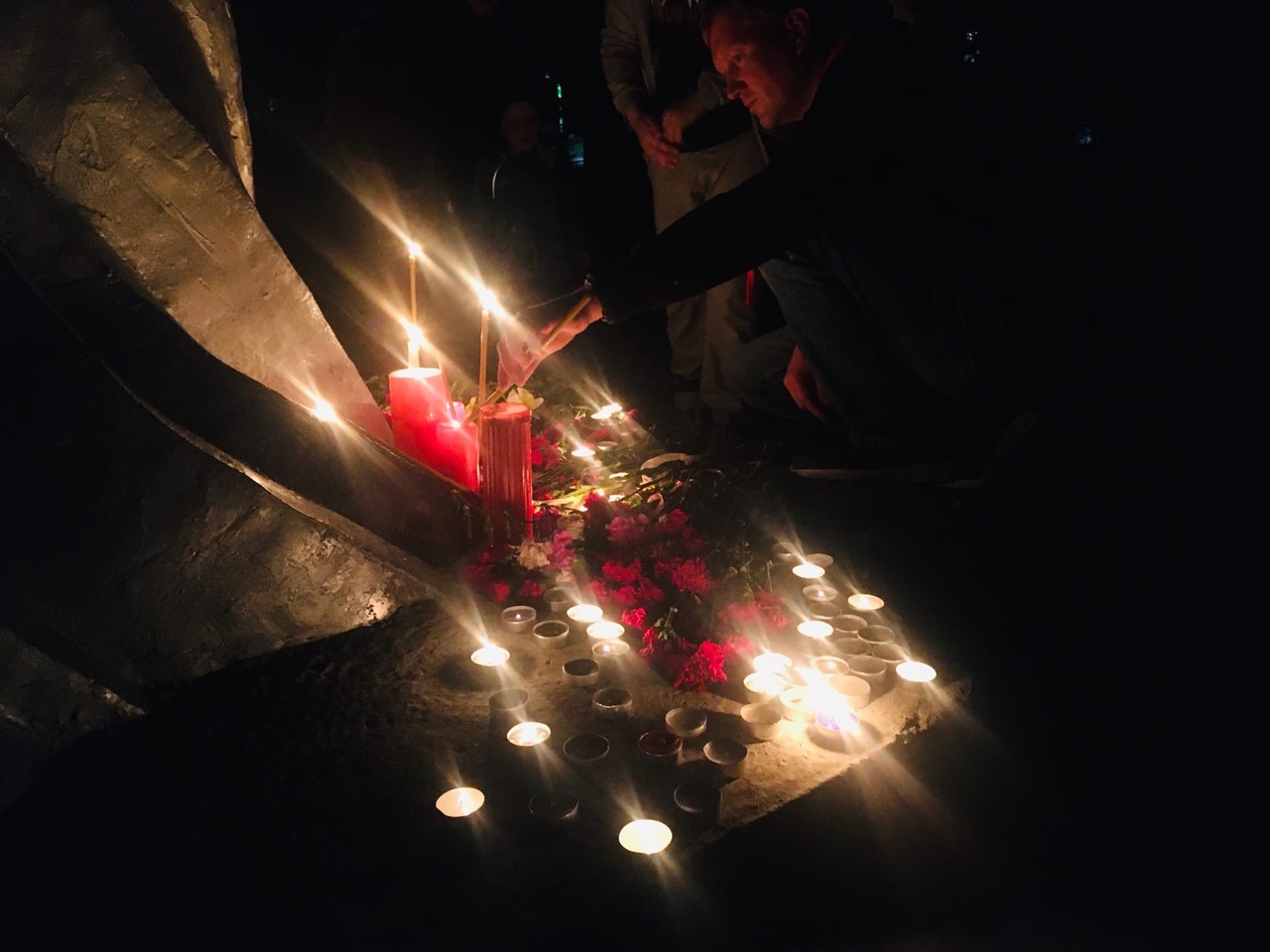 С половины девятого и почти до половины одиннадцатого часа вечера 8 мая люди приходили к скульптуре вальсирующей пары. К 22 часам, когда была объявлена минута молчания, здесь присутствовали около 20 человек – взрослые и дети.