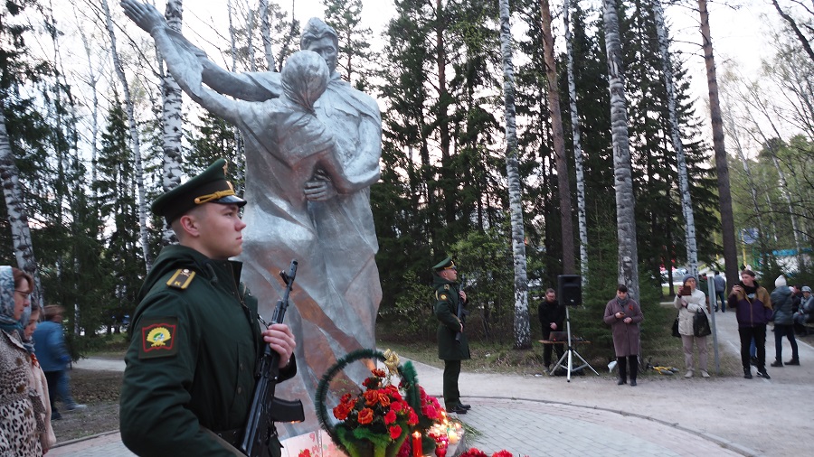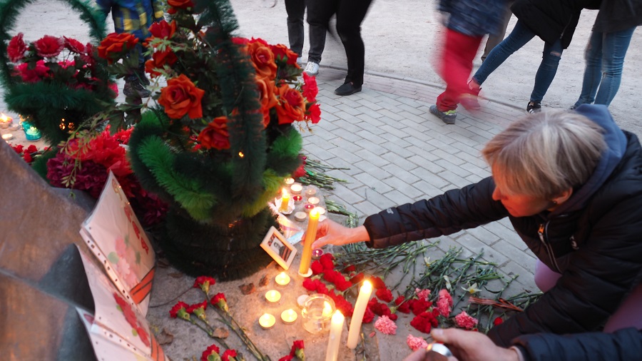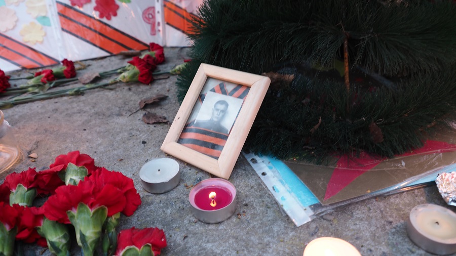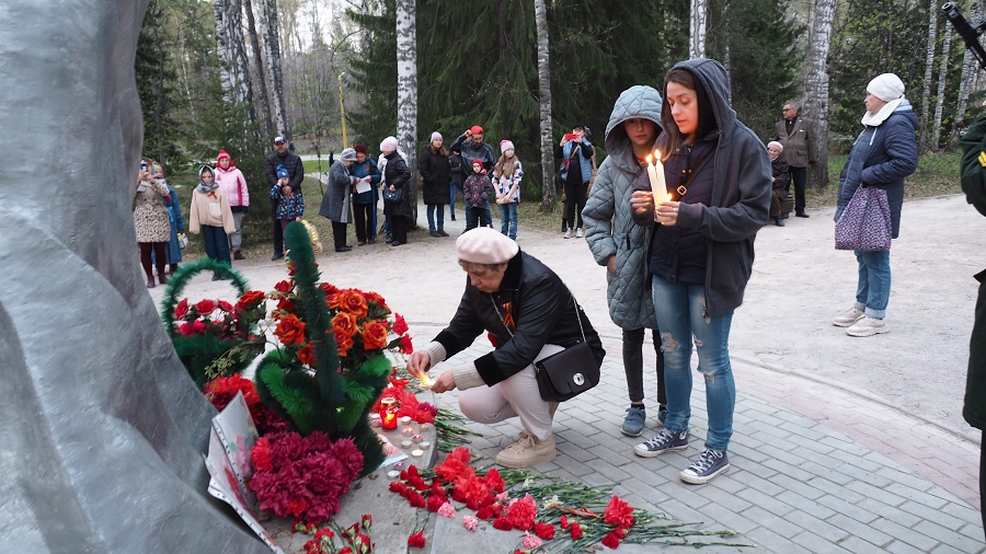 На акцию «Свеча памяти» пришло чуть больше 30 человек. Люди подходили, зажигали свечи и на минутку замирали, шепотом благодаря солдат за подвиг во имя человечества. Десятки свечей яркими язычками пламени освещали цветы. Кто-то поставил рядом с ними портрет солдата.