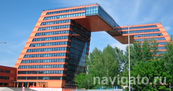 "Многофункциональный комплекс технопарка состоит из трех 14 этажных зданий, в плане расположенных по вершинам условного треугольника. Дома построены в виде наклонных башен и на уровне 13 этажа соединены между собой галереей, находящейся над проезжей частью. К башням примыкают симметрично расположенные административные здания, в которых размещена технологическая и сервисная инфраструктура", говорится в сообщении.