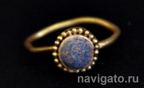 Начальник экспедиции рассказал, что исследованный комплекс состоял из пяти могил, окруженных двумя рвами. В одном из погребений был обнаружен железный трехлопастной наконечник стрелы, круглая нашивная бляшка из плющеной золотой фольги и бронзовая литая бляха с зооморфным рельефом. Само погребение было разрушено, кости скелета лежали в беспорядке. Под его нижней челюстью находился золотой перстень со щитком, украшенным круглой голубой пастовой вставкой в напаянном гнезде-держателе, обрамленном по краю зернью. Паста - непрозрачное стекло - используемый в античности ювелирный материал, который делали из соды, песка и глины. Дужка перстня сделана из толстой золотой проволоки, один конец которой не припаян к щитку, чтобы украшение оставалось безразмерным. Такие перстни есть, в частности, в сибирской коллекции Петра I. Судя по форме и технологии изготовления, перстень, вероятнее всего, является позднеантичным импортом. Их изготавливали эллинские и римские ювелиры, а в сибирские лесостепи к саргатским племенам они попали уже в начале нашей эры, уточнил археолог.
