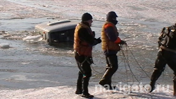 Спасатели уточнили, что УАЗ ушел под лёд в 200 метрах от берега. Глубина в этом месте достигает девяти метров.