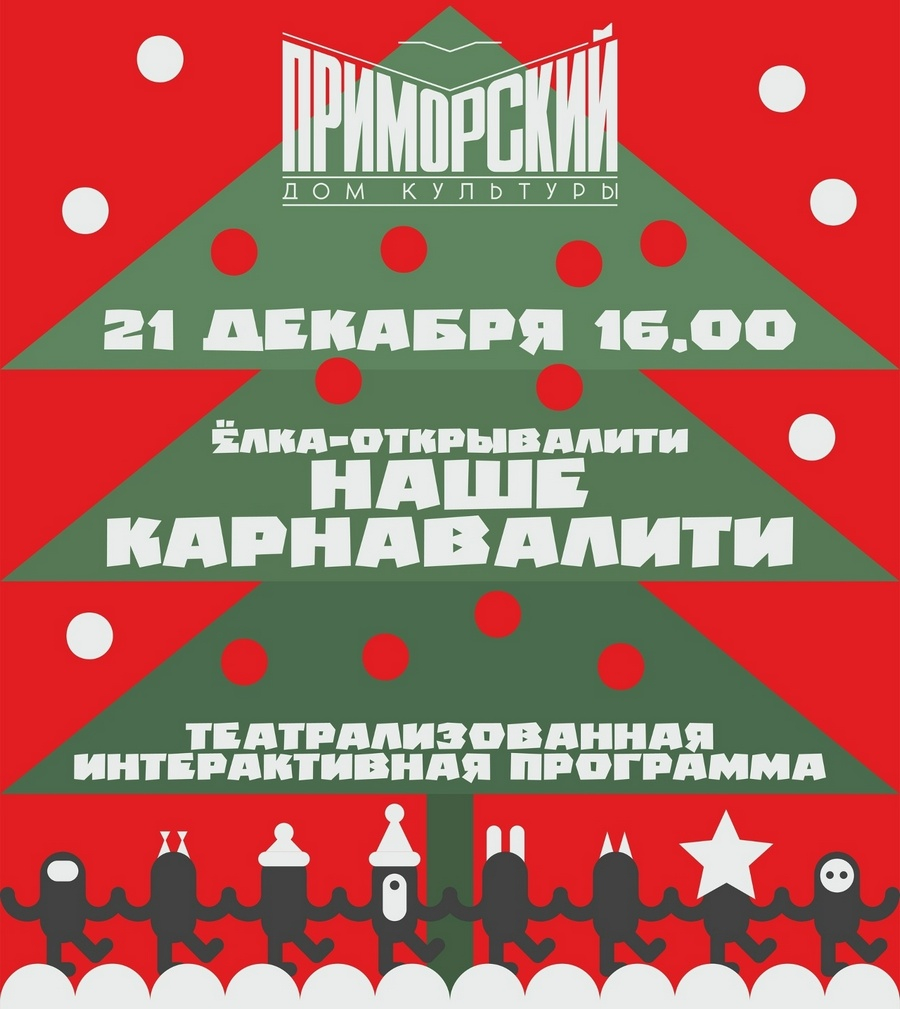 21 декабря на площадке возле ДК «Приморский» (ул. Молодости, 15) состоится театрализованная программа «Ёлка-открывалити наше карнавалити» (6+). Начало – в 16:00. Дресс-код праздника – карнавально-новогодний костюм. Самые яркие и креативные участники получат призы и подарки от организаторов. Телефон для справок – 336-80-72