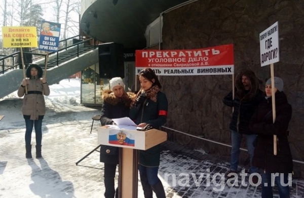 Митинг возле Торгового центра Академгородка, в котором приняли участие около 60 человек, вела Анна Ильина — дочь детского тренера Анжелики Свиридовой, «Ниссан» которой 28 февраля выбросило из колеи на дамбе ГЭС, после чего она врезалась во встречную «Тойоту». В аварии погибли 7-летний ребенок в «Ниссане» и водитель «Тойоты». Свиридова и две девочки 7 и 10 лет, которые ехали с ней, получили тяжелые травмы.