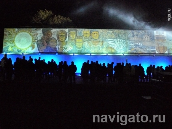 - На холсте, который закрывал панно, транслировались фильмы об истории Новосибирска и строительстве ГЭС. Затем на сцену, смонтированную рядом с мемориальным комплексом, поднялись представители областного правительства и муниципалитета, депутаты. Выступающие отметили огромное значение как самой реставрации, так и этого мероприятия – время не властно над подвигом, который совершили строители гидроэлектростанции.
