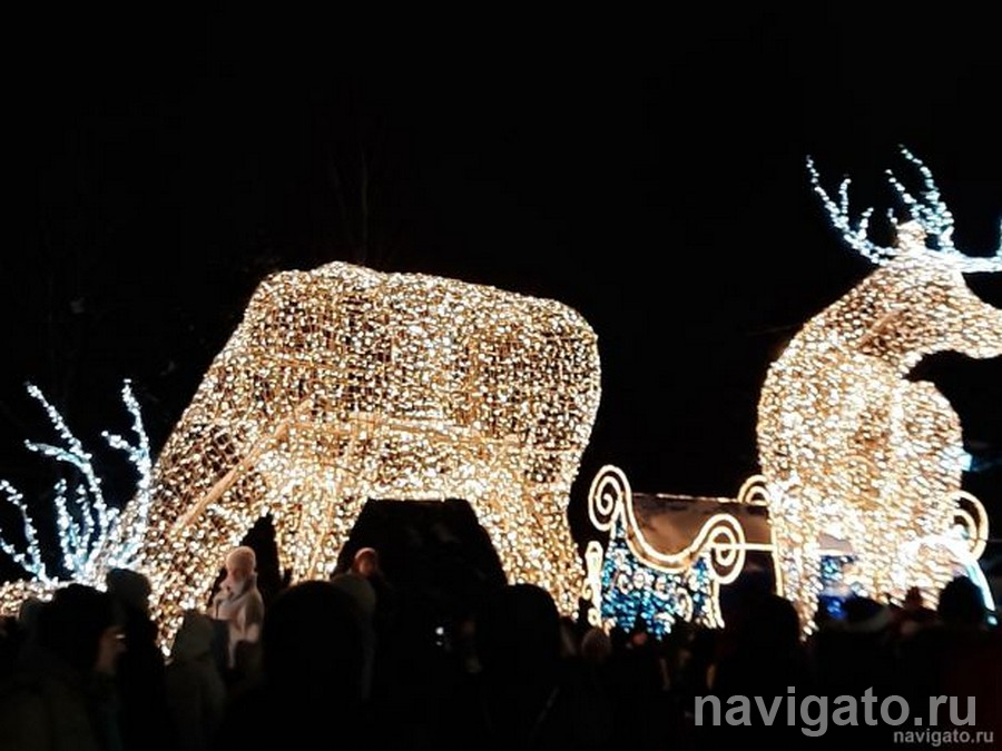 В Первомайском сквере будет работать светодиодный фонтан, появятся световые шары, тоннели и снежинки. Вся центральная аллея превратится в фотозону в стилистике «Аэрофлота».