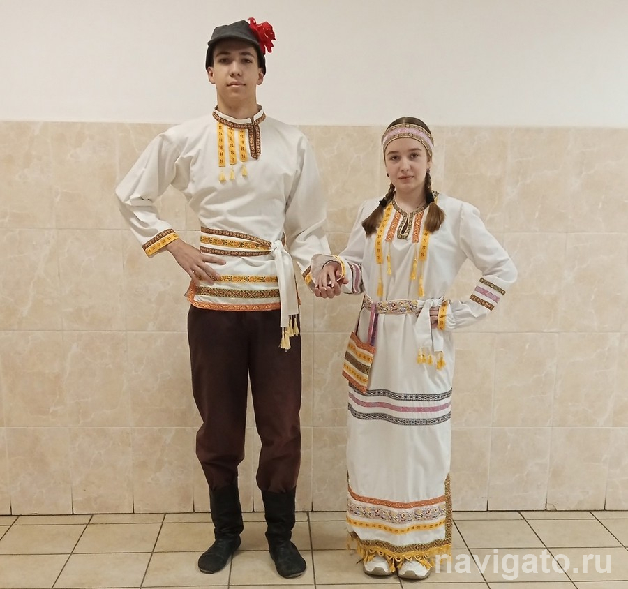 – Рубашку носили навыпуск и подпоясывали кушаком. Ворот, манжеты и подол рубахи украшены тесьмой. На ногах – сапоги, на голове – картуз с большим красным цветком, – рассказывают создатели.