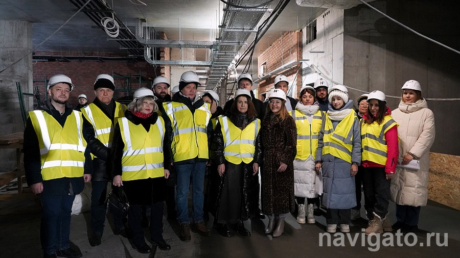 Сотрудникам СУНЦ НГУ показали первый этаж будущего общежития физматшколы. На объекте завершены монолитные работы, возведён каркас здания, ведётся устройство внутренних стен и фасада, монтаж окон, утепление, горизонтальная разводка и монтаж стояков системы отопления.