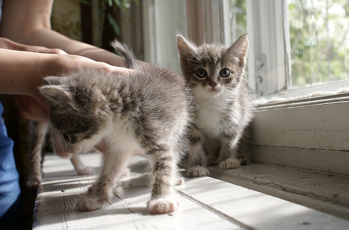 Мальчик и девочка. Котятам месяц. Здоровые, сами пьют молочко