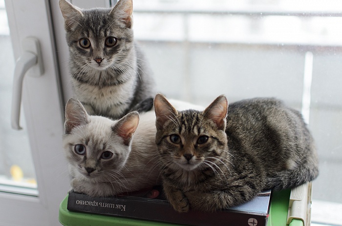 Мальчики, возраст три месяца, один сиамского окраса, два серых полосатика. Здоровые, игривые, к лотку...