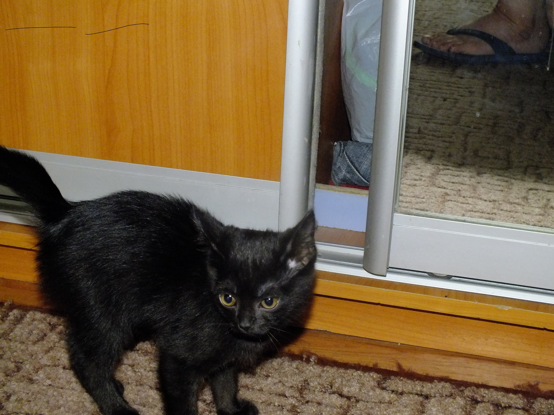 Новосибирск! Маленький котенок девочка ищет дом.Кошечку, зовут Ночка, 2-3 месяца, пушистая, абсолютно черненькая. Всеядная. Заельцовский район Звоните 7 913...