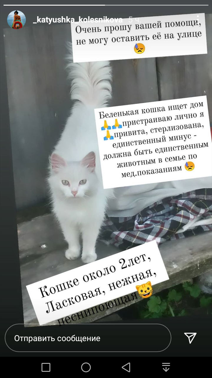 Отдается кошечка по семейным обстоятельствам, в семью без детей и других животных.Она больше как собака чем кошка.мало играет.ест сухой корм,она адаптирована на человека,ей нужно...
