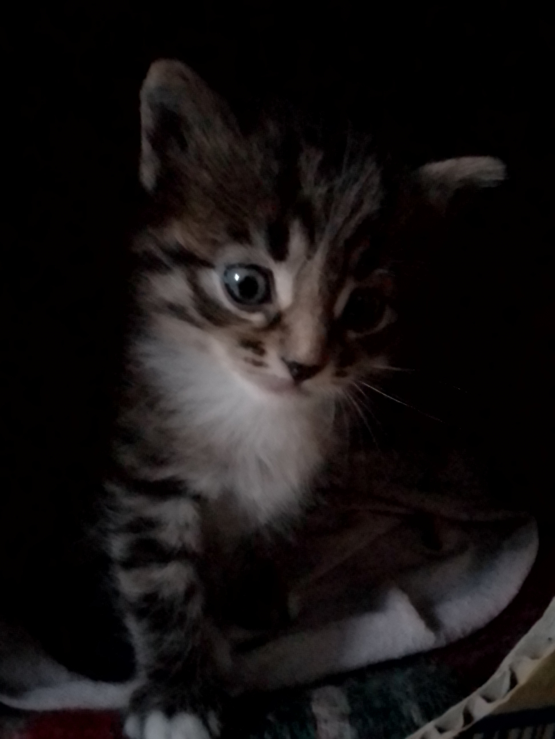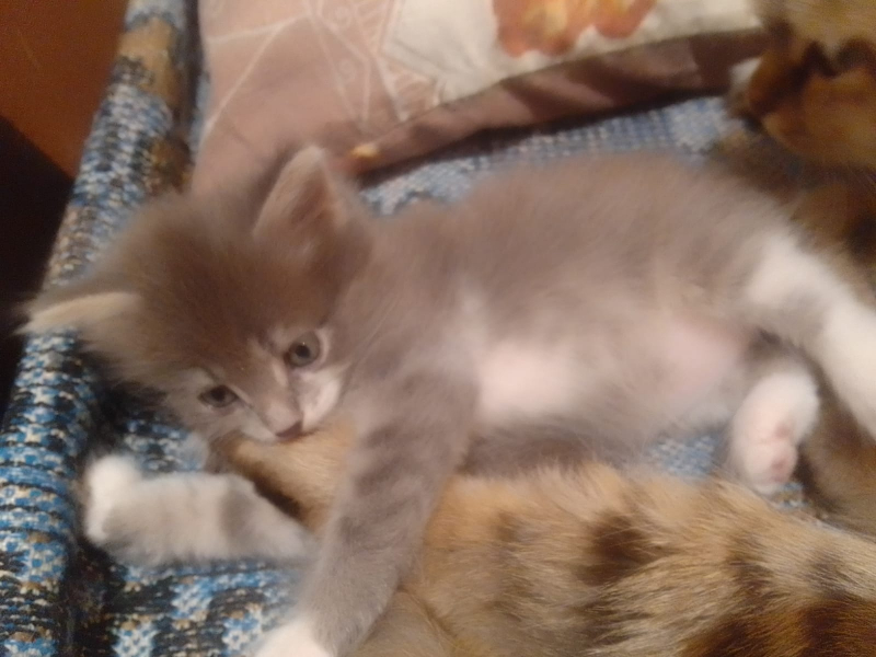 Девочка деловая, веселая, игривая, очень ласковая, мурчит, с аппетитом кушает все подряд, в лоток ходит. Мышей переловит, окрестных собак построит(когда подрастет). У нас уже...